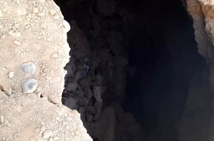 Malatya'nın Yeşilyurt ilçesinde yol üretim çalışmaları sırasında çökme meydana gelen yoldaki çukura düşen iş...