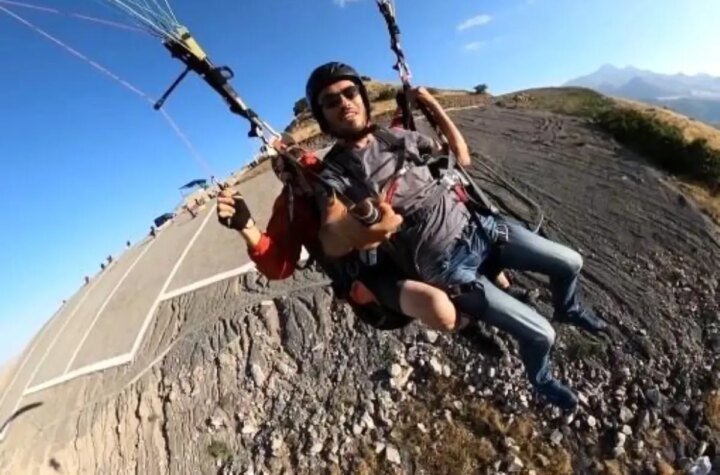 Kayseri'de yamaç paraşütü pilotu Emin Gürpınar, kumanda ipinin düğümlenmesi sonucu mecburî iniş yaptı. Panik...