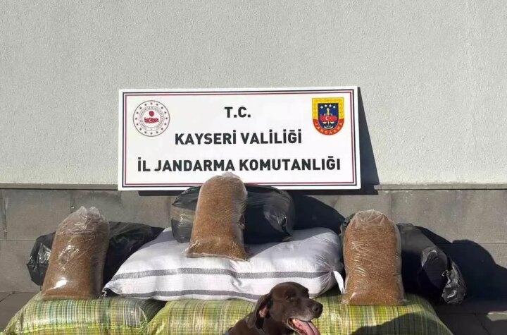 Kayseri'de jandarma grupları, yol denetimi sırasında bir otobüste 230 kilogram kaçak tütün buldu. Olayla...