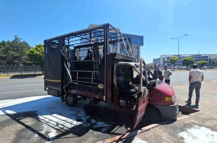 Kayseri'nin Kocasinan ilçesinde park halindeki bir kamyonet, ansızın çıkan yangın sonucu kullanılamaz hale geldi....