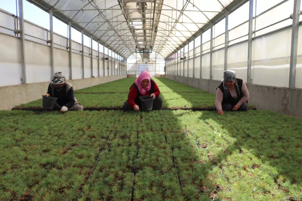 Kocasinan ilçesi Mithatpaşa Mahallesi’nde 60 hektar alanda kurulan ve yılda 3 milyon fidan kapasiteli Kayseri Orman Fidanlık Şefliği’nde fidanlar bayan çalışanlar tarafından itinayla yetiştiriliyor. Tesiste çalışan bayanlar, fidanların dikiminden çapalanmasına, yabani otların temizlenmesinden sulamasına kadar bakımlarını titizlikle yapıyor. Bayan çalışanlar tarafından yeşertilen 1 milyon 200 bin fidan, büyük orman yangınlarının olduğu bölgeler başta olmak üzere Kayseri ve civarında, erozyonla gayret ve ormanlaştırma projelerinin olduğu bölgelere gönderilip toprakla buluşturuluyor.