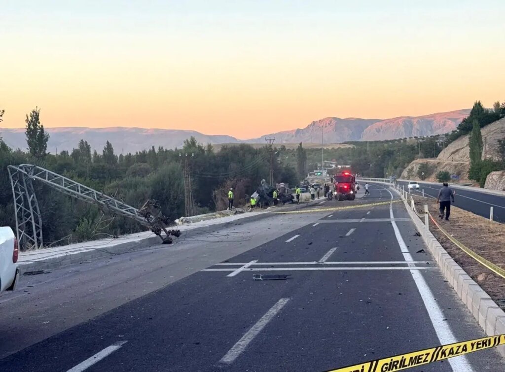 Malatya’nın Darende ilçesinde freni boşalan tırın yolcu otobüsüne çarpma anı güvenlik kameralarına yansıdı. Kazada tır dereye yuvarlanıp alev alarak yanarken, otobüsteki yolcular büyük panik yaşadı.