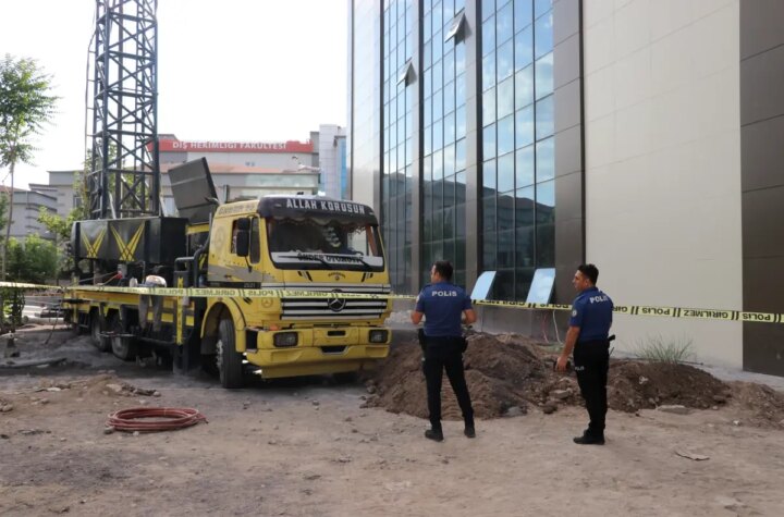 Kayseri'nin Melikgazi ilçesinde inşaatta sondaj çalışması yapan emekçi, içi su ve balçık dolu kuyusuna...